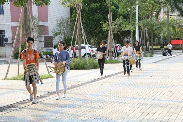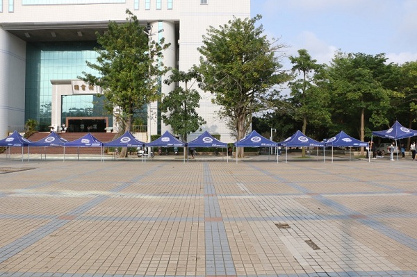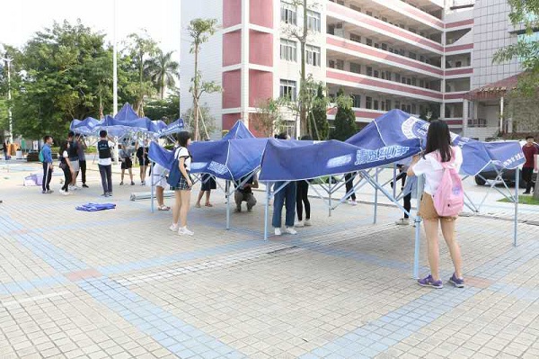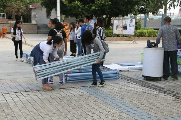 下午四点整,四大机构的干部们准时来到雷阳广场集合,在场地负责人的安排下,大家开始分头行动。学生会和团委的干部负责搬运帐篷,新闻中心和勤工中心的同学则负责桌椅的搬运。当第一批基本物资搬运完毕后,大家开始搭建各区域的帐篷,在搭建帐篷时,大家齐心协力互相帮忙,不一会儿,帐篷就搭建完毕了。时间一点一滴的流逝,时间来到了六点十五分,稍作休息的干部们开始搬运第二批物资。当被问及参加场地布置工作是否辛苦时,学生会干部洪银欣同学表示场地布置工作虽然辛苦,但这样是为了生命科技文化节的顺利召开,所以辛苦是值得的。
