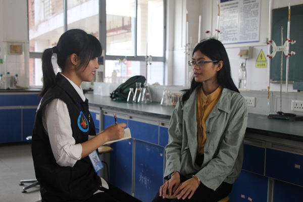 随后,记者问到为何今年生技展区的展示作品不仅相比去年有所减少而且比其他专业少时,黄钰盈同学激动地说:“我们生技今年的主题是‘食·用安全与技术’,并且生技展区贵精不贵多!”此时,实验室里的组员投来了赞同的目光。最后,黄钰盈同学表白所有组员,肯定他们的努力,并鼓励大家一起努力把生技展区搞好,还号召其他学院的同学前来观看!