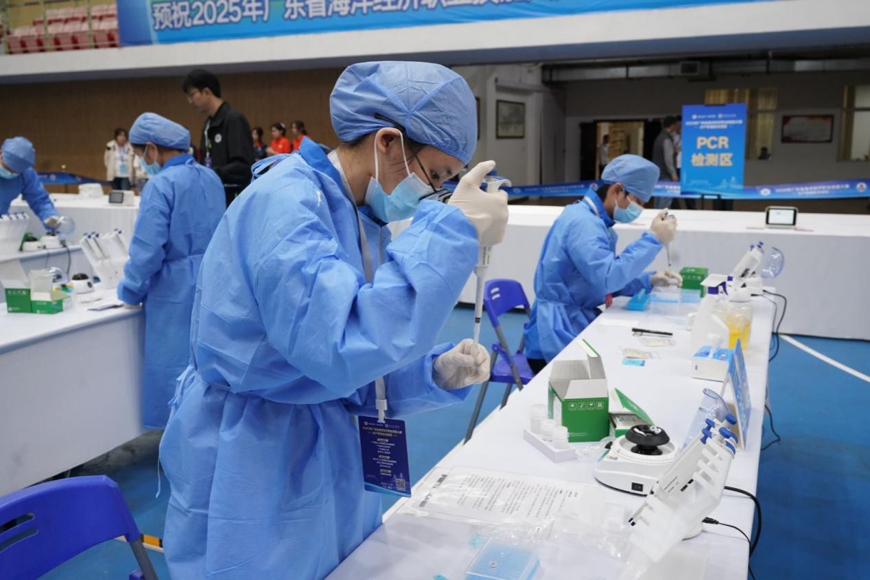 “常见浮游植物识别”项目考验选手的眼力与经验,显微镜下的微观世界一览无余,形态辨认、种类区分需在分秒间做出判断。而在“水生动物病原核酸检测”区,精密仪器低频运转,选手凝神操作,移液、扩增、结果判读,每一步都关乎最终成绩。