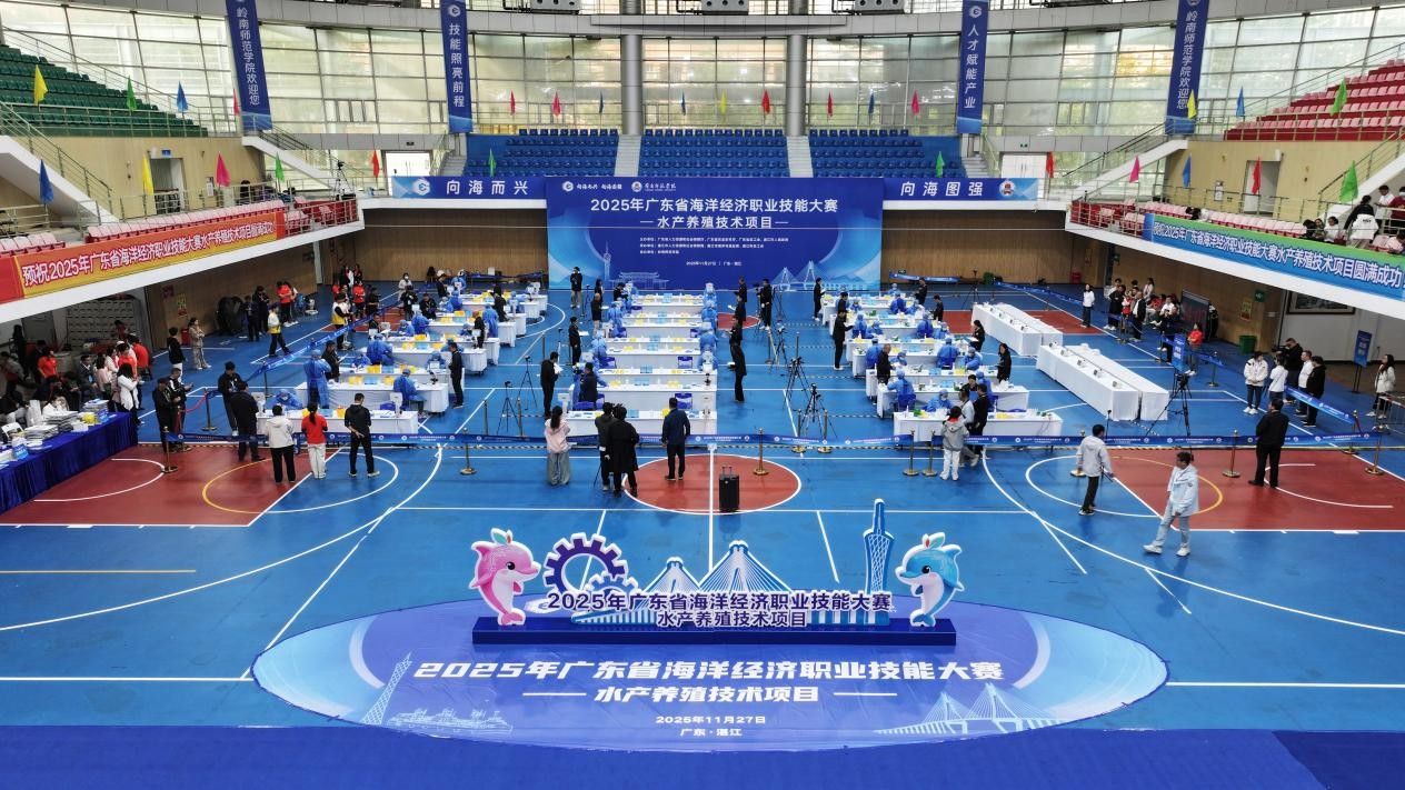 11月27日,2025年广东省海洋经济职业技能大赛水产养殖技术项目竞赛在岭南师范学院举办。大赛由广东省人力资源和社会保障厅、广东省农业农村厅、广东省总工会与湛江市人民政府联合主办,湛江市人力资源和社会保障局、湛江市海洋与渔业局、湛江市总工会承办,岭南师范学院协办,吸引了来自全省14个地市及省直代表队的技能精英同台竞技。