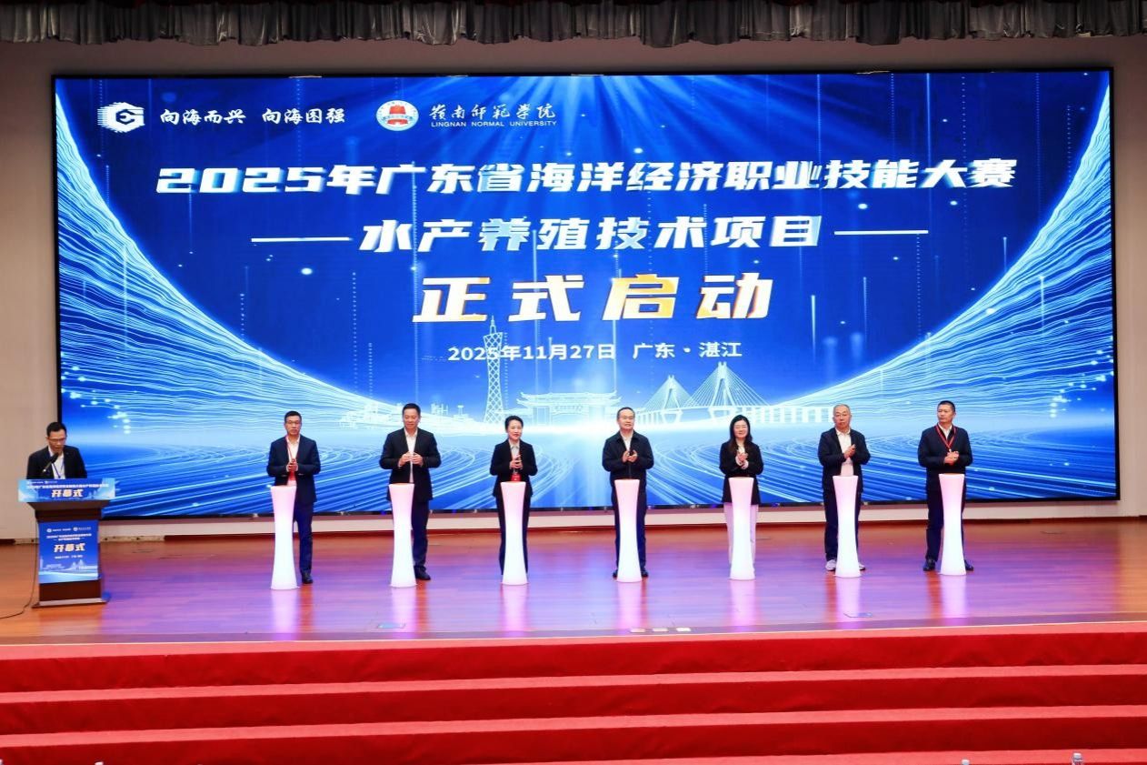 2025年11月25日至28日,2025年广东省海洋经济职业技能大赛在湛江成功举办,这场全省首届聚焦海洋经济的专项技能赛事,汇聚了全省21个地级市及省直代表队219名技能精英同台竞技。作为大赛实施保障单位及水产养殖技术赛项的承办赛点,学校立足自身海洋学科专业优势,主动担当、精准发力,为大赛圆满举办提供了全方位、高质量的保障支撑。