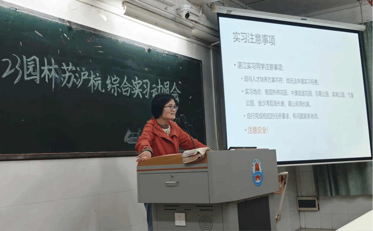 为做好2023级园林专业苏沪杭综合实习的前期准备工作,帮助学生明确实习目标与要求,保障实习活动有序推进,生科院于近日在第四教学楼C-401召开园林专业苏沪杭综合实习动员会。学院院长刘锴栋、副院长孙余丹、园林系主任成夏岚、副系主任牛学礼、刘倩丽及园林专业教师和2023级园林专业全体本科生出席会议。本次会议由园林系主任成夏岚主持。