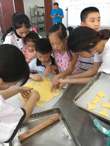 烹饪与营养教育专业是我院的特色专业,烹饪学子们带领小朋友们在柔软的面粉和黄油中体会烹饪带来的乐趣,一个个形态各异的小饼干在小朋友手中呈现出来。让大家在劳动中体会到了乐趣。