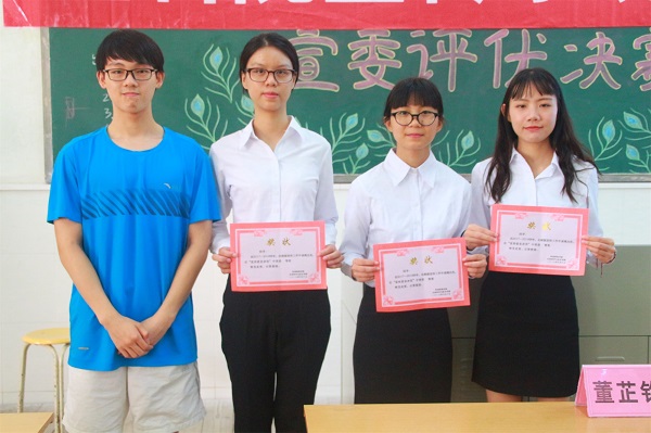 在第一轮的考核后,共有6位班级宣传委员脱颖而出。他们依次上台利用PPT进行演讲,分别从宣传工作内容、宣传成果和班级荣誉等方面展示了各班级的良好风貌,还分享了自己的工作心得,寄予对班级未来宣传工作的展望和提出对新闻中心工作的意见和建议。