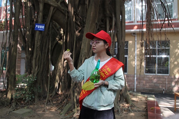 活动中,高山榕志愿者服务队队长王楚茵汇报了高山榕活动自2006年以来所开展的活动及获得的奖项。湛茵茵同学代表高山榕志愿者发言。随后志愿者们开展了高山榕相关知识问答等形式多样活动。