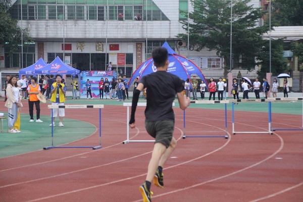 林青威同学用他分秒必争的精神,化遗憾为奇迹,以一分十五秒取得了普通组男子400米跨栏第六名的好成绩。