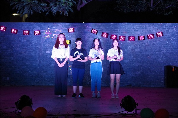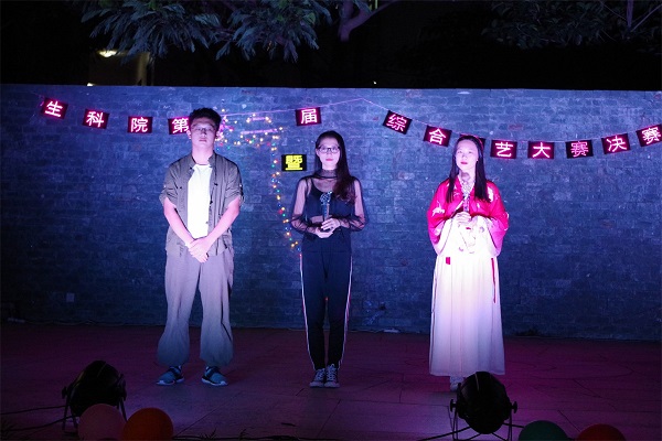 【生科院新闻中心5月25日讯】“才艺如同风吹起,生科生气永不息。”为提高我院学生的综合素质与各支部的凝聚力,展现生科风采和生科院文工团的训练成果,5月25日,生科院团委文艺部于师道园举办了生科院第十二届综合才艺大赛决赛暨文工团汇演。校舞蹈队队长苏嘉惠,校礼仪队队长崔金媛,校声乐队副队长伍欣如,雷雨话剧队代表赖志成,生科院团委正职负责人高颖珊及各二级学院干部出席了本次活动。