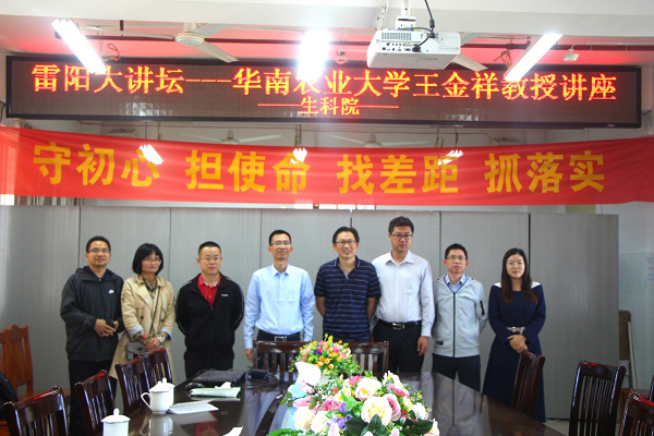 2020年11月13日上午10:30,由生科院主办的“雷阳大讲坛”于燕雷楼D栋505室顺利举行,华南农业大学王金祥教授与老师们开展2021年国家自然科学基金申报经验交流。生科院副院长(主持工作)刘锴栋,副院长王锂韫,副院长孙余丹及生科院学术骨干参加了本次交流会。