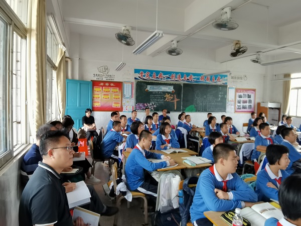 校内外指导老师在中山市海洲初级中学进行公开课听评课