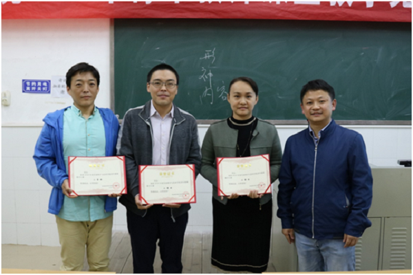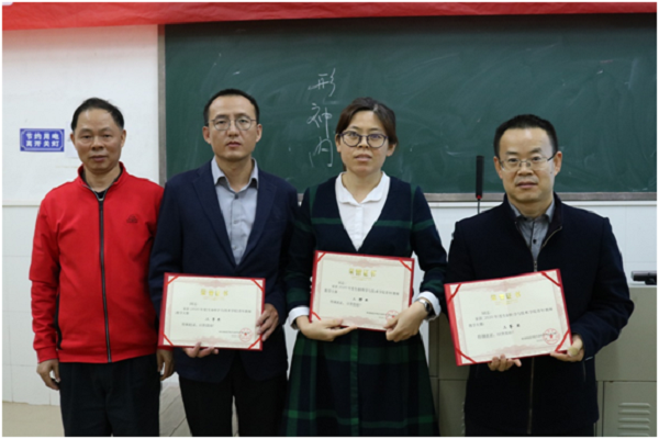 最后,学院党委梁煜鹏书记、教务处副处长夏加亮、学院教学督导委员会主任刘晚苟教授分别为获得一、二、三等奖教师颁奖。