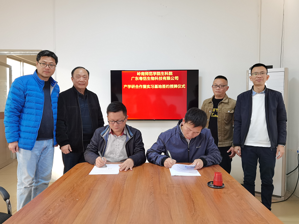 在双方单位领导的共同见证下,生科院与广东粤恬生物科技有限公司负责人共同签订了《产学研合作框架协议》及《岭南师范学院专业实习基地协议》。