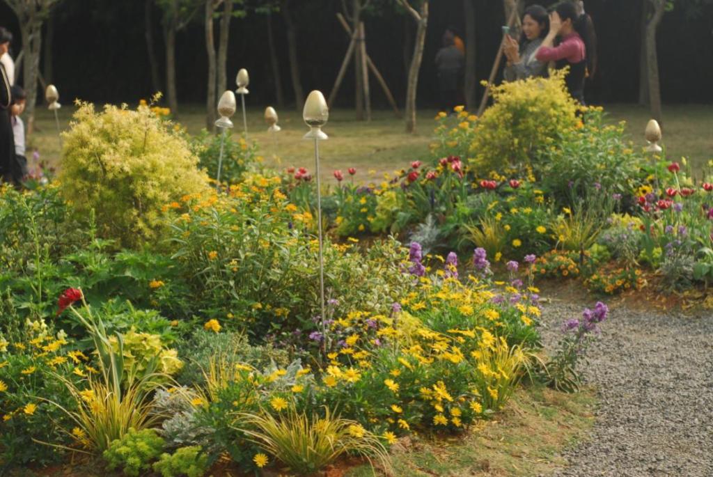 花境是模拟自然界中林地边缘地带多种野生花卉交错生长的状态,运用艺术手法提炼、设计成的一种花卉应用形式。花境不同于花坛,是一种长效性的花卉景观,具有生态美、色彩美、季相变化美和竖向错落美的特点。符合当今生态节约园林和自然美的理念,所以近年来,成为园林绿化行业的一个热点。湛江目前正在创建生态园林城市,花境在湛江的应用方兴未艾。我院教师抓住这一行业热点,同时,生科院领导大力支持进修学习,目前已有两位教师取得了广东园林学会和中国园艺学会颁发的花境师资格证书(二级),为提升湛江的园林品质打下了良好的基础。自2019年来,园林专业师生已在湛江各大公园建成了数个花境,成为公园的新亮点,受到了公园领导和市民的一致好评。在营建花境的同时,也注意总结经验和对湛江园林工作者进行讲学,做了《花境的设计、施工与养护》、《湛江适生园林花卉》等报告,将专业理论和实践经验更好的服务地方园林事业的建设。