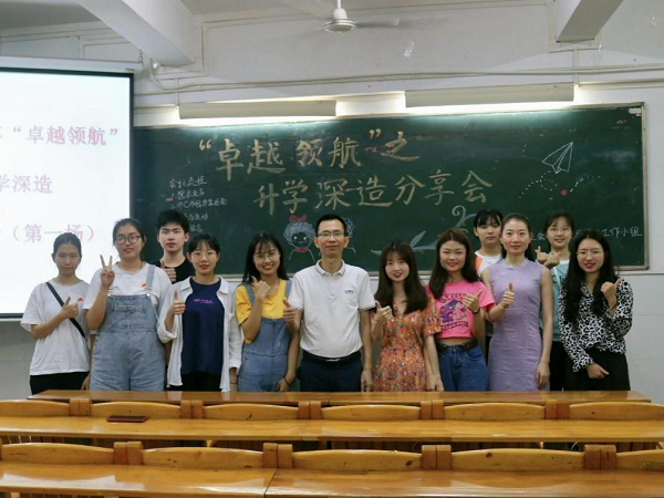 最后,刘锴栋副院长(主持工作)对升学成功的同学表示热烈祝贺并对今年的学院升学情况作横纵向比较分析。他从四个方面对同学们提出建议:一是选定目标,坚定信心。他以17级成功升学的同学为例,强调合理选定目标,并为目标持续奋斗的重要性;二是互帮互助,共同进步。他希望18级、19级同学们互相激励督促,形成良好的学风,共同奋进;三是巧用方法,梳理要点。他建议同学们根据自身情况和报考学校的要求,制定详细计划,运用合适的学习方法,对各类重难点进行梳理总结;四是放平心态,合理作息。他期望同学们在复习备考过程中始终保持良好的心态和较佳的身体状态,最终取得优异的成绩。