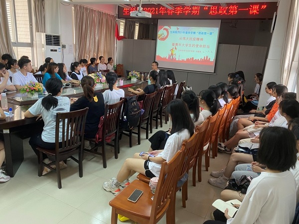刘楷栋副院长指出新冠肺炎疫情是新中国成立以来我国遭遇的传播速度最快、感染范围最广、防控难度最大的公共卫生事件。在以习近平同志为核心的党中央坚强领导下,全国上下和广大人民群众经过艰苦卓绝努力并付出牺牲,疫情防控取得重大战略成果。他提出青年大学生要牢记这段历程,探究“战疫制胜”的密码,满怀信心、负重前行! 他从战“疫”制胜的根本保证、战“疫”堡垒、战“疫”制胜的力量之源、铸就伟大抗疫精神等四个方面进行讲述。最后,他期望20级同学要学习弘扬抗疫精神,勇挑重担,在学习、工作等方面取得更大的成绩。