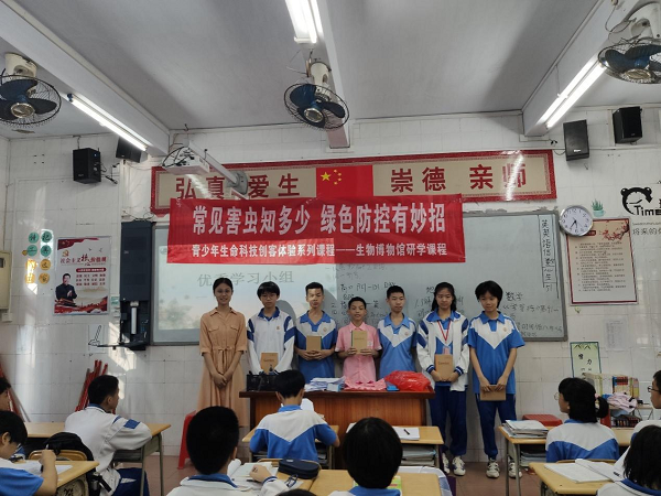 近日,为深入学习贯彻习近平新时代中国特色社会主义思想,落实党史学习教育“我为群众办实事”的部署要求,服务地方基础教育,岭南师范学院生科院、粤西青少年生命科学创客体验中心、青稞生物创客教育大学生科普志愿者团队、青稞红旅实践队为岭南师范学院附属中学的初一年级学生开设了青少年生命科学创客体验系列课程《生物博物馆昆虫研学公益课程》,课程围绕昆虫知识和捕虫器的制作等内容,在生科院陈蓉老师的指导下,由青稞团队中生物科学师范专业学生执教,在岭南师范学院生科院生物博物馆昆虫馆与岭南师范学院附属中学初一年级(2)班和(3)班教室共进行了11次授课。