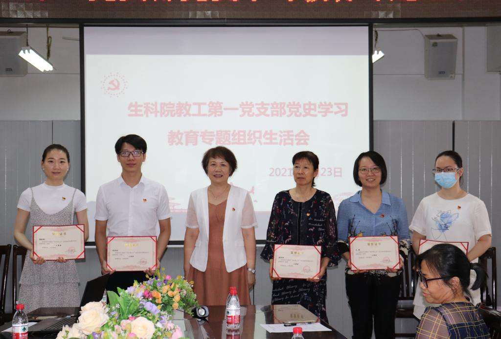 兰艳泽与支部全体党员共同学习了习近平总书记在党史学习教育动员大会上的重要讲话精神,观看了视频《谭平山》,听取了支部开展党史学习教育的基本情况汇报,并为生科院“党在我心中”党史知识竞赛获奖的教工党员颁奖。