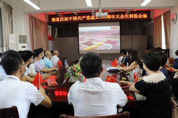 在党的百年华诞之际,庆祝中国共产党成立100周年大会7月1日上午8时在北京天安门广场隆重举行,中共中央总书记、国家主席、中央军委主席习近平发表重要讲话。生科院全体师生党员在燕雷楼D栋505室观看同步直播。
