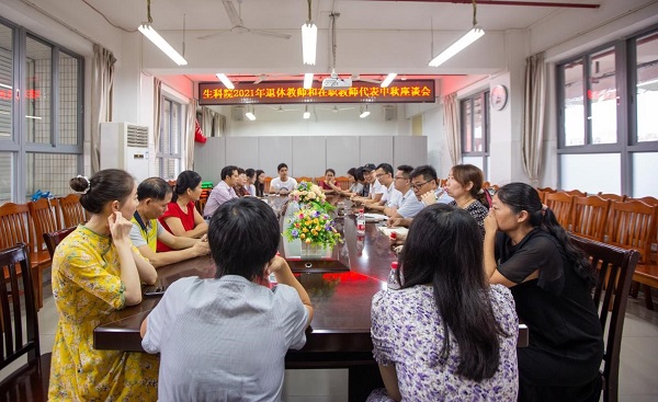 2021年9月17日下午15:30分在第四教学大楼D505,生科院党委书记梁煜鹏、副院长(主持工作)刘锴栋、副院长孙余丹、副院长王锂韫组织并邀请了我院退休教师和在职教师代表参加中秋座谈会。会议由刘锴栋主持。