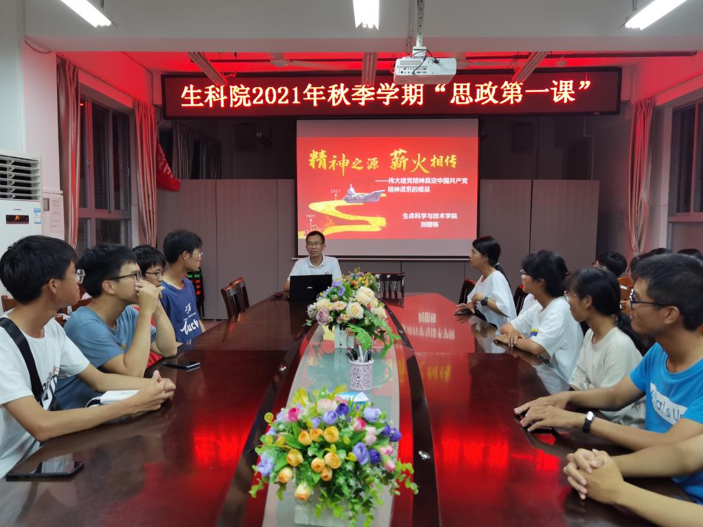 为贯彻落实省委教育工委和《岭南师范学院关于做好2021年秋季学期校院党政主要领导上第一堂思政课工作的通知》相关工作要求,教育引导广大青少年学生把学习“七一”重要讲话精神的成果转化为奋进新征程、建功新时代的实际行动,抓好思政教育,提高我院学生的思想觉悟,生命科学与技术学院党委书记梁煜鹏和副院长(主持工作)刘锴栋近日分别为我院2021级新生讲授2021年秋季学期“思政第一课”。