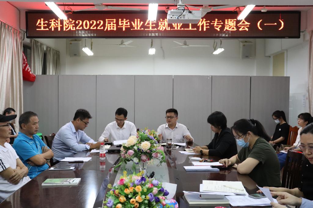 10月14日下午四点,生科院于燕雷楼D栋505室召开了2022届毕业生就业工作第一期专题会。生科院领导班子及全体教师出席了本次会议。