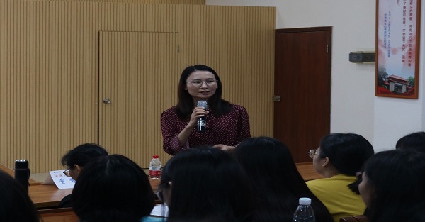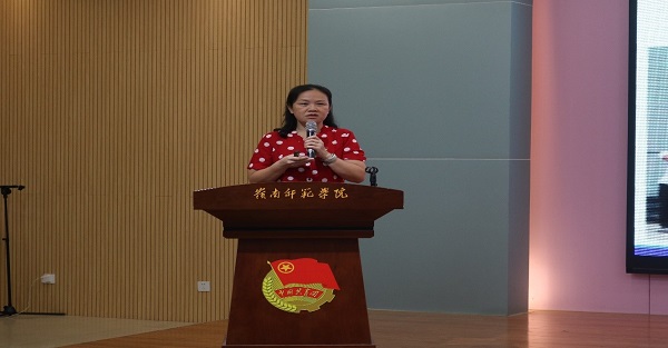 广东省中山市教师发展中心教师培训部部长陈少芳以一位新入职的教师四年后升为学校年级副主任的事迹为例,向同学们阐述了“提升专业知识是专业教师的重要支柱”的观点。陈少芳强调了专业知识的重要性,她希望同学们合理利用大学的四年,努力提高自己的专业知识。