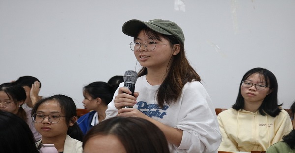 广东肇庆中学教师汪欢欢指出学历提升的重要性。接着,她向同学们讲述了她在教学方面的一些感受,汪欢欢强调一个好的学校会有一个强大的团队,这能使教师有一个更好的发展。最后,汪欢欢就如何成为一名优秀的教师向同学们提出了提高自身的语言表达能力,提高组织课堂能力,多读书,多参加比赛等要求。