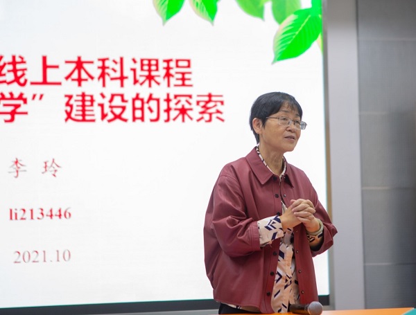最后,李教授就课程一体化建设的思考和线上教学的可能遇到的问题与现场教师进行了交流探讨。她阐述了自己关注前沿、更新教材、提高理论、注重实践、以生为本、教书育人的建设理念,同时,她还分享其他高校在一流课程建设方面的先进经验,让教师们对一流线上本科课程的申报与建设有了更深层次的认识和理解,还为今后开展在线课程建设提供了思路和方法。