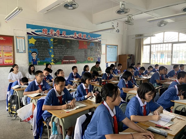 在中山市古镇初级中学的走访检查中,指导老师首先深入到实习生的教学课堂中。课堂上,实习生利用大学课堂上所学的教学技能,声情并茂地层层引导学生进行学习,充分展现了师范生良好的精神风貌。