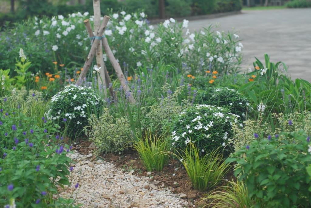 花境是一种模拟自然界中林缘花卉斑块状、交错生长的花卉应用方式。起源于英国,其特点是不但要表现植物个体生长的自然美,更重要的是还要展现出植物自然组合的群体美。花境是一种生物多样性高、管理维护水平低的自然、环保、可持续花卉应用类型,同时,由于种植多种花卉,拥有百花争艳、花期连绵不断的优秀景观效益,已日益成为我国花卉应用的主流模式。