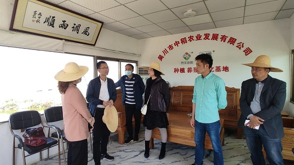 会后,刘锴栋团队在镇政府和驻镇工作队的陪同下到吴川市中稻农业发展有限公司进行实地调研,与镇政府和驻镇工作队就水稻种植、养鹅产业及观光休闲农业的未来发展方向进行交流。