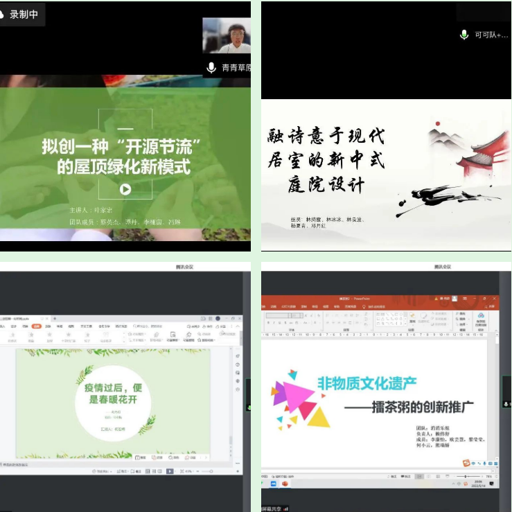 三等奖:阳光组《疫情过后,便是春暖花开》、可可队《融诗意于现代居室的新中式庭院设计》、青青草原《组拟创一种“开源节流”的屋顶绿化新模式》