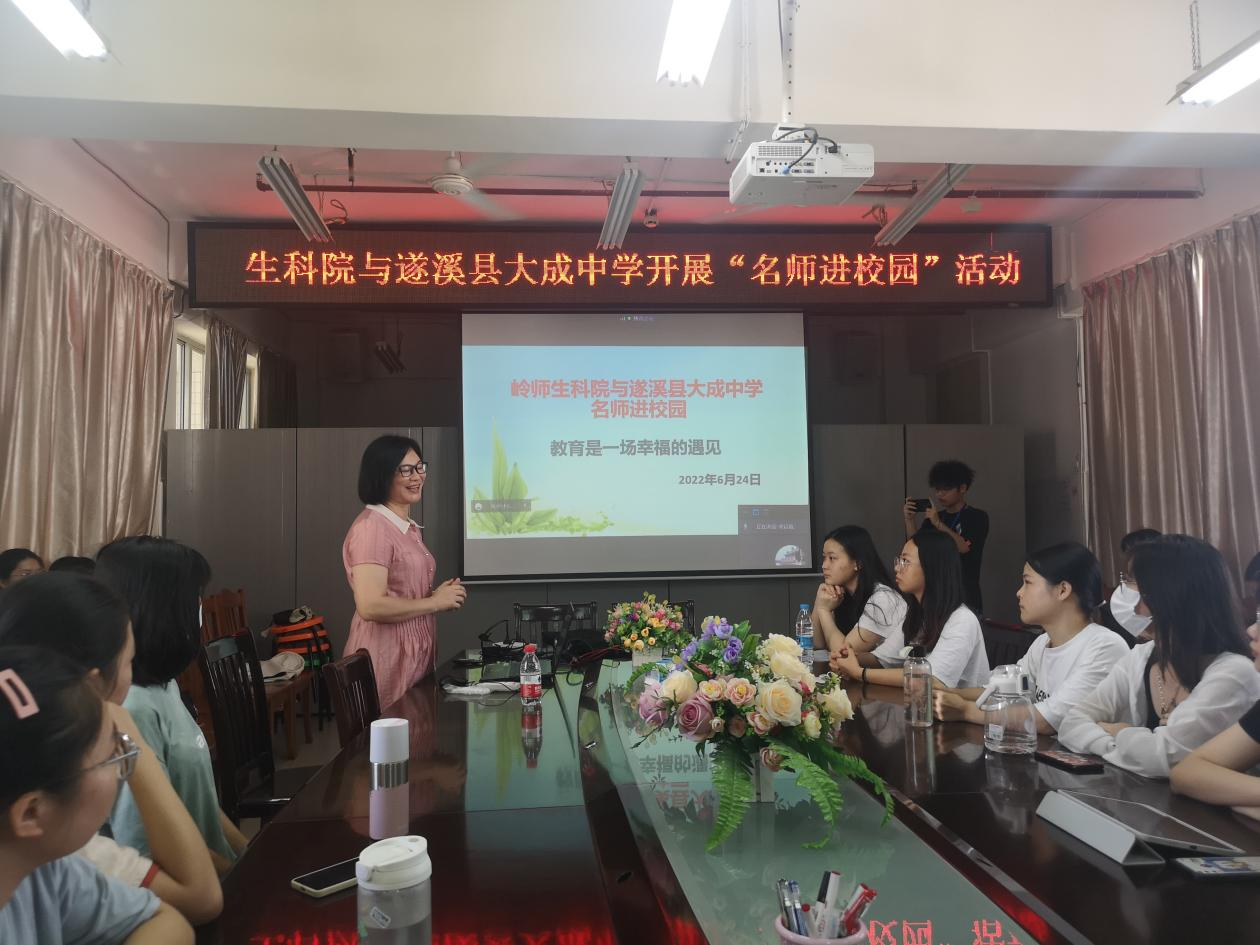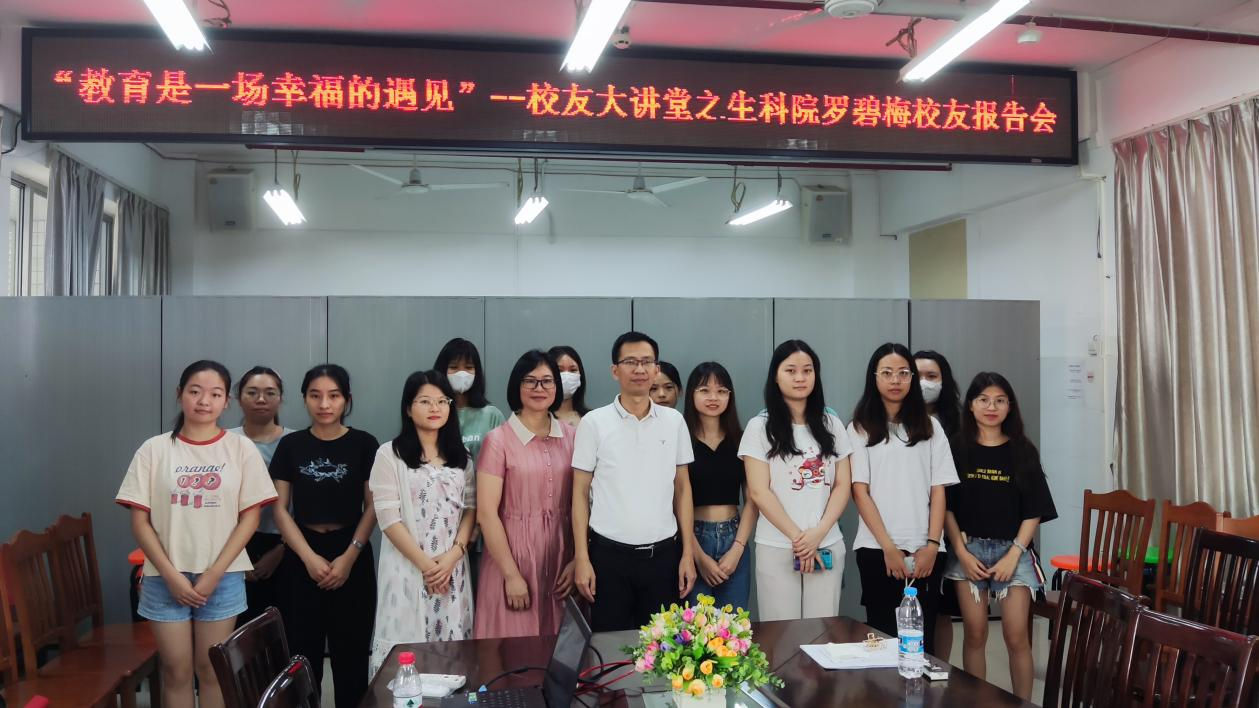 6月24日下午三点,生科院于第四教学楼D栋505会议室举办了主题为“教育是一场幸福的遇见”的名师进校园活动暨优秀校友大讲堂专题报告会,特邀生科院2000届校友罗碧梅作为主讲嘉宾。生科院副院长(主持工作)刘锴栋、生物科学系余小杏老师出席了本次报告会,2019级生物科学(师范)专业全体学生参加了本次讲座,专题报告会以线上线下的形式开展。讲座由余小杏老师主持。