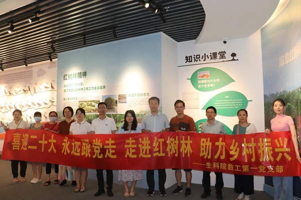 为深入学习贯彻习近平总书记关于生态文明建设的重要论述,深刻领会广东省第十三次党代会精神,迎接党的二十大胜利召开,7月1日,在中国共产党101周岁生日来临之际,生科院教工第一党支部开展以“喜迎二十大、永远跟党走、走进红树林、助力乡村建设”为主题的党日活动为党献礼,以实际行动表达永远跟党走、奋进新征程的决心和信心。生科院副院长刘锴栋(主持工作)、党委副书记覃静君、生科院教工第一党支部党员参加此次党日活动。
