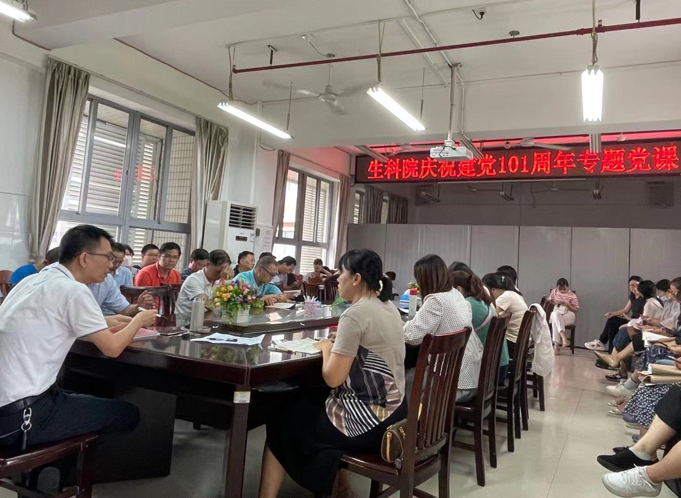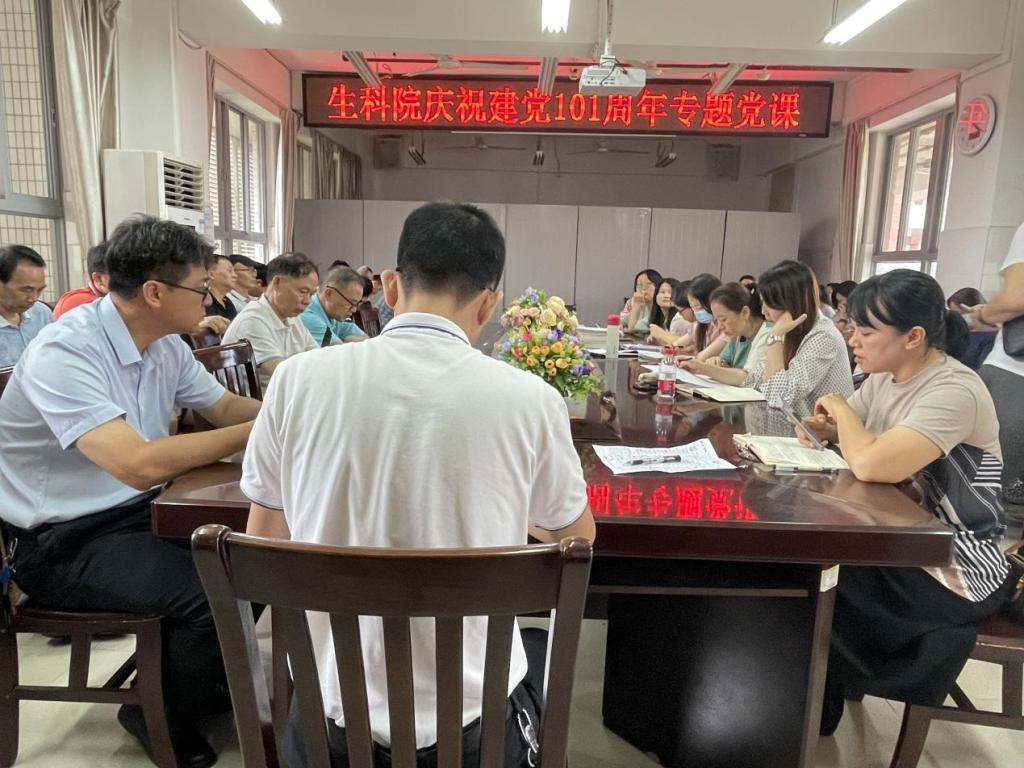 为热烈庆祝中国共产党成立101周年,喜迎党的二十大胜利召开,进一步激发全院广大党员教师新时代新担当新作为,生科院于2022年7月4日下午在燕雷楼D505会议室召开庆祝建党101周年专题党课。专题党课由副院长刘锴栋(主持工作)主持,党委副书记覃静君领学,学院党委委员、领导班子及全体教职工参加。