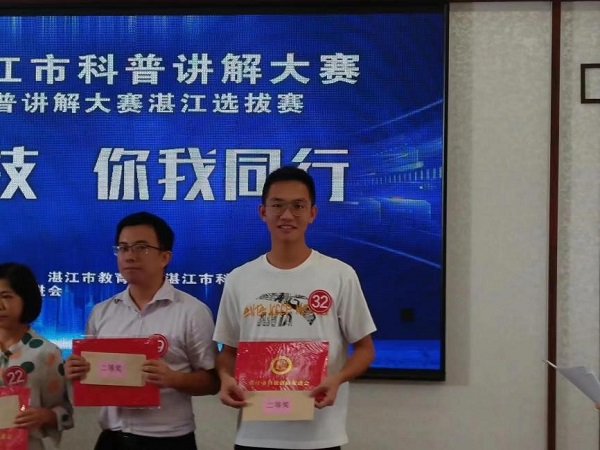 7月27日下午,由湛江市科学技术局、湛江市教育局、湛江市科学技术协会联合主办的2022年湛江市科普讲解大赛暨广东省科普讲解大赛湛江选拔赛在湛江嘉瑞禾酒店成功举行。我校推荐的2名参赛选手从高校科研院所组中脱颖而出,分别取得了二等奖和优秀奖的好成绩。