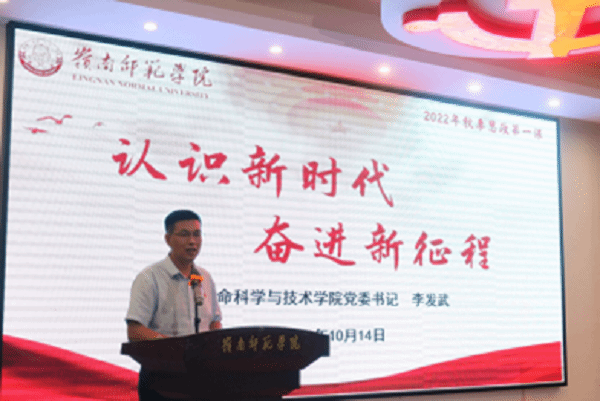 为积极贯彻落实教育部等十部门《全面推进“大思政课”建设的工作方案》精神,充分发挥“思政第一课”铸魂育人的关键作用,进一步落实立德树人根本任务,引导青年大学生找准航向,以勇毅前行的奋进姿态投入新学期的学习和生活中,生科院党委书记李发武、院长刘锴栋分别讲授了2022年秋季学期“思政第一课”。