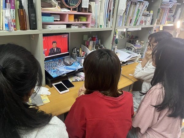 生命科学与技术学院全体师生党员通过集中或广播、电视、手机、网络等线下线上多种方式相结合,以高昂的精神风貌和饱满的热情认真收看党的二十大开幕会盛况。