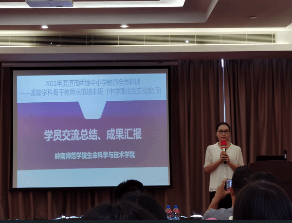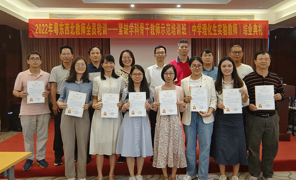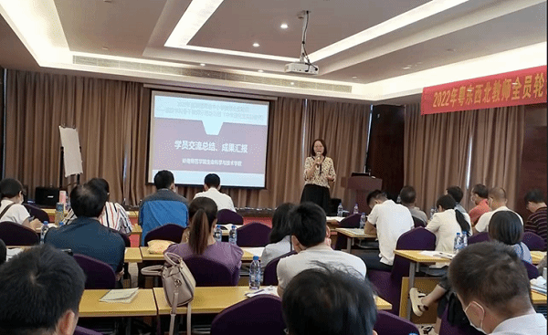 10月22日上午,2022年粤东粤西粤北地区教师全员轮训——紧缺学科骨干教师示范培训班(中学理化生实验教师)第一阶段(集中研修)结业典礼于湛江嘉皇酒店会议室举行。生命科学与技术学院院长刘锴栋、54位学员出席会议,会议由项目负责人文静老师主持。