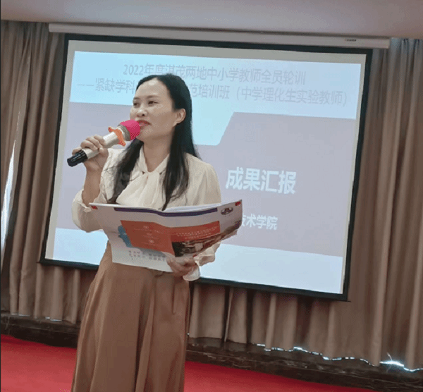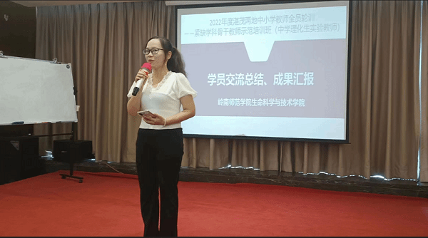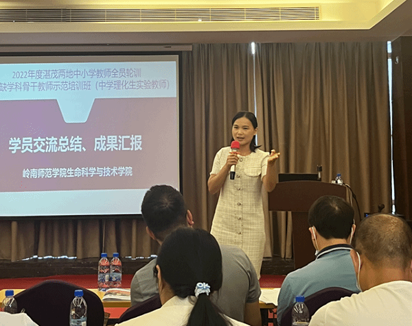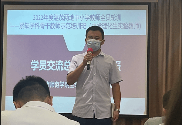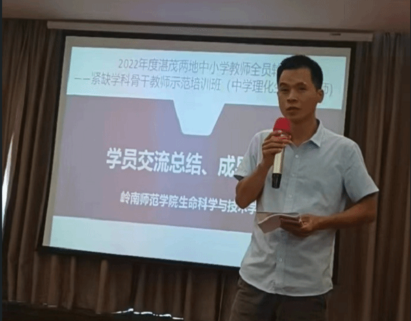 化学科代表吕妙滢老师、物理科代表吴广水老师、生物科代表刘永良老师从各自学科的角度分享了培训的收获。他们都表示非常荣幸能参加岭南师范学院举办的紧缺学科骨干教师示范培训班学习。在学习过程中,认识了很多新的朋友,从专家讲座中,学习了很多专业知识,无论是从理论上还是专业素质培养上都有了新的认识和进步,为以后教学工作提供很大帮助,并表示衷心的感谢!