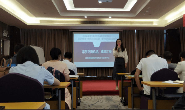学员代表欧春华老师、苏锦连老师、陈海秋老师、钟慧莹老师、何梅珍老师、黄国杰老师、朱君娜老师、朱伟强老师也分享了自己培训的收获和体会。他们表示除了在实验方面有很大收获,在课堂教学和做科研论文方面也收获不少。开班的第一天,文静老师的破冰之旅环节,全班同学一起玩了小游戏。玩完游戏,大家都感觉很开心,在玩中增进了熟悉感,在玩中体验了身心愉悦感。吴盟老师的《生命科学,生而为王》课程,清晰详细的梳理了生命科学的发展历史。让大家对物理、化学、生物,以及生命科学的发展有了更深的了解,拓展了学员们的知识宽度。李文送老师的《世界咖啡:科学精神与教师专业发展》课程,运用了世界咖啡的模式,小组研讨了以科学精神为主题的内容。这种学习方式体验感很不错,可以把这方式用到教学中,不但提高了学习效果,还锻炼了学生的合作协同能力!郝琦蕾老师的《科研论文的写作与课题申报》课程,详细的讲解了科研论文的写作,以及课题的申报、投稿等。对少写科研论文,课题申报没经验的老师,特别对准备做课题的老师来说,真是及时雨,实用性很强。