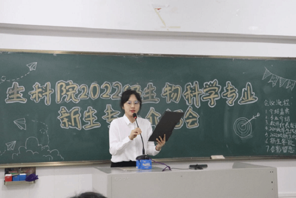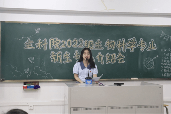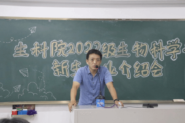 为了让学生更进一步了解专业要求,认识专业就业前景,合理规划大学生涯,10月21号晚上7点半,生科院于燕雷楼D栋601室召开2022级生物科学系新生专业介绍会。生科院院长刘锴栋教授,生物科学系主任周艳博士,生物科学系教师代表,高年级学生代表以及2022级生物科学专业全体新生参加此次会议。