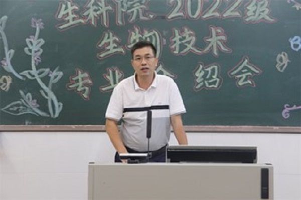 “学生要提高对生物技术专业的认可度,正确看待专业。”教师代表潘进权向在场学生强调。潘进权从前中后三个时期解读生物技术专业的发展历程,增强学生对所学专业的了解与认同。他谈及生物技术专业被广泛应用在生活的方方面面,是人类解决难题的重要途径,如:粮食问题、生物安全问题、新冠肺炎疫情、产业转型升级等,由此增强新生对学习生物技术专业的信心。最后潘进权建议:同学们应调整心态,积极乐观面对生活;尽早规划,做好定位,立足将来。