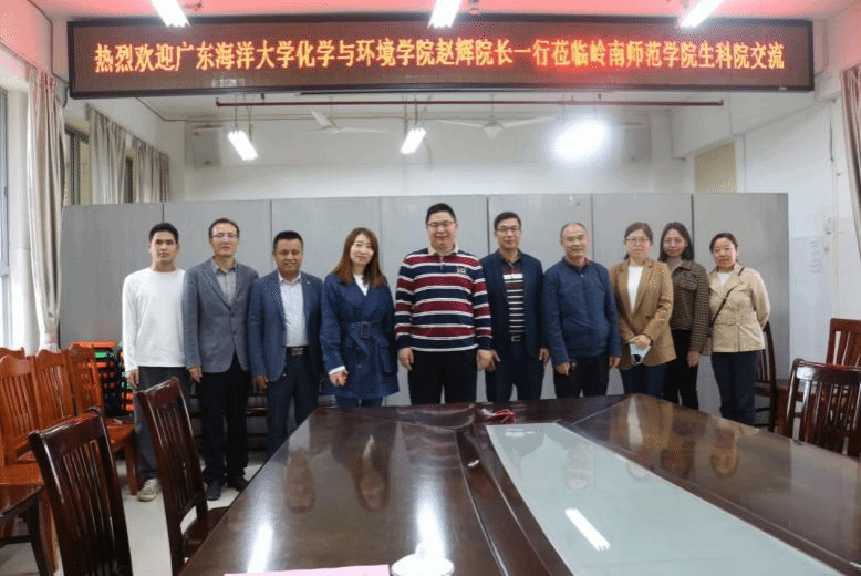 2023年3月31日上午,广东海洋大学化学与环境学院院长赵辉、资源与环境系主任邓培昌、资源与环境系教授钟来元一行来我院开展交流,生科院党委书记李发武、副院长王锂韫、海洋资源开发与技术系教师参加交流座谈会。会议由李发武书记主持。