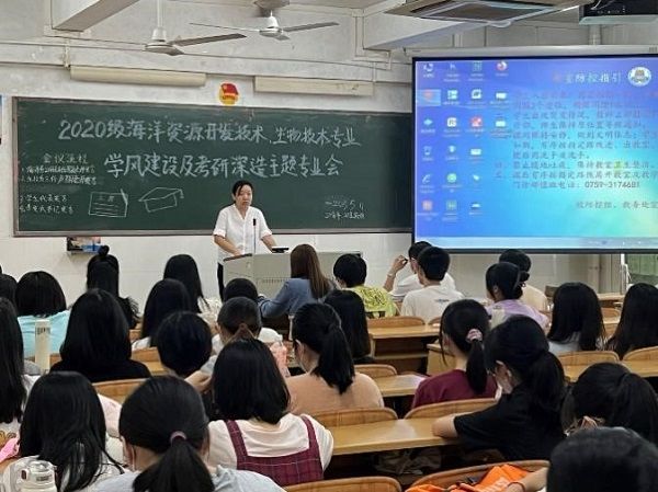 为加强学生学风建设,充分调动我院学生的考研积极性,增强学生的考研斗志,帮助学生更加深入了解当前考研的现状和形势,生科院于2023年5月11日在教四C203教室举办2020级生技、海洋专业学风建设及考研深造主题专业会。生科院党委书记李发武、生科院副院长王锂韫、生物技术和海洋系教师、19级生技和海洋专业的学生代表以及2020级生技和海洋专业全体学生出席本次会议,会议由海洋系副主任陈妍妍主持。