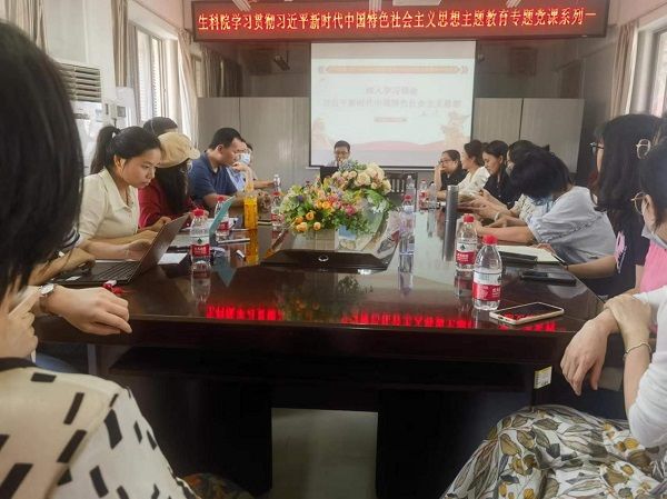 为推动生命科学与技术学院学习贯彻习近平新时代中国特色社会主义思想主题教育走深走实,生科院党委策划开展学院党委委员、党支部书记系列专题党课。学院党委书记李发武于5月17日下午在燕雷楼D-505室,以《深入学习领会习近平新时代中国特色社会主义思想》为题讲授党课,正式开启学院系列专题党课。各师生党支部书记、副书记,全体学工办、辅导员,教工第一党支部的全体党员共30人参加会议。