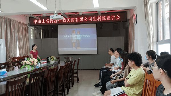 5月20日,中山未名海济生物医药有限公司向我们分享了五个方面的内容,分别是公司简介,产品介绍 ,生长激素的市场情况,公司的发展规划以及工作环境的介绍等。宣讲结束后,部分毕业生向企业投递简历,并在现场与企业负责人进行对接。
