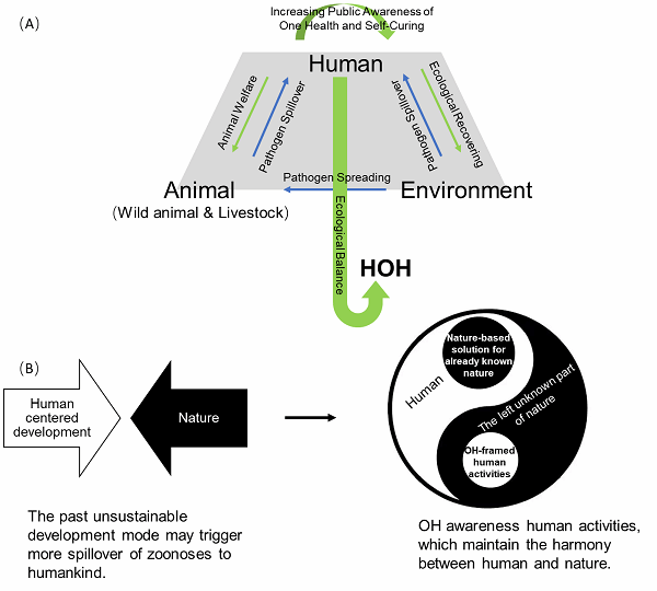 新冠疫情(COVID-19)的暴发使得世界重新思考人和自然内在的健康关系问题,即同一健康(OH)。然而,目前基于部门技术的解决方案成本高昂。我们提出“以人为本”的“同一健康”(HOH)环境管理概念,基于限制不可持续的自然资源开采和消耗行为来阻止因自然生态系统失衡带来的人畜共患病外溢。HOH可以作为基于自然的解决方案(NBS)环境管理模式的补充。NBS基于已了解的自然知识,而HOH则是针对未知的自然部分。为进步的深入分析,本研究系统分析了疫情爆发期间(2020.1.1~3.31)广受欢迎的中文社交媒体的传播大数据,发现公众已受到了“同一健康”思想的影响。在后疫情时代,我们应该加深公众对OH的认知,引导世界走向更加可持续的轨道,防止将来出现更严重的人畜共患病的外溢。