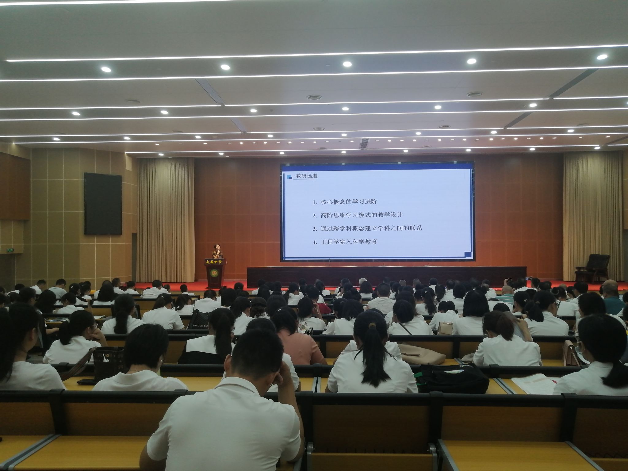 参加讲座研修活动的有遂溪县大成中学全体领导班子成员及全部学科老师,活动由袁守成副校长主持,袁守成副校长代表遂溪县大成中学对文静老师的到来表示热烈欢迎。