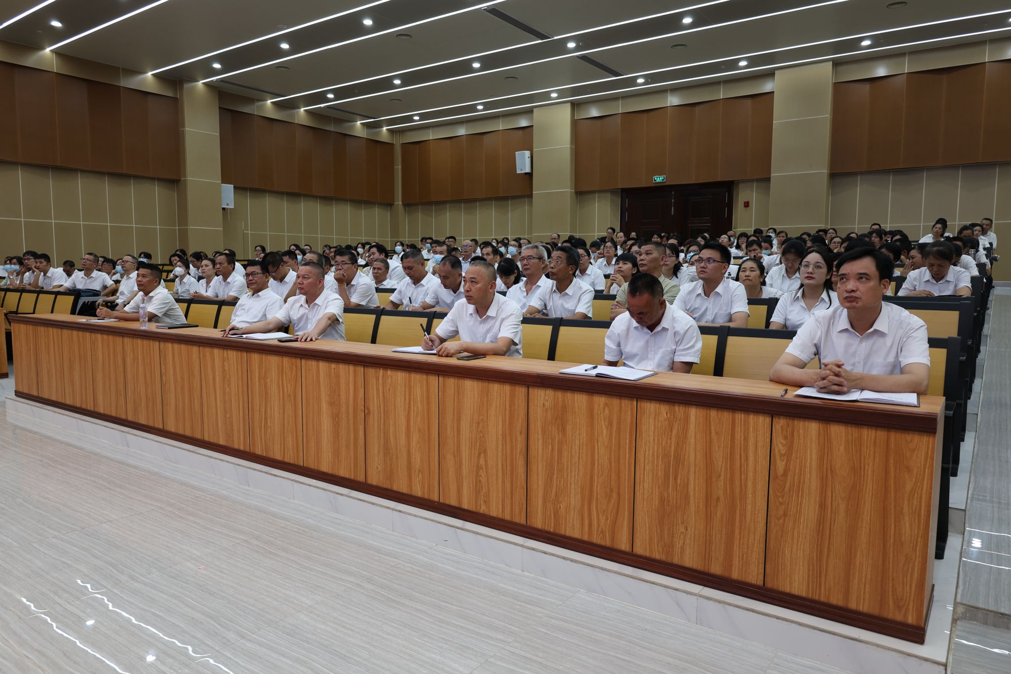 遂溪县大成中学的领导老师们认真聆听