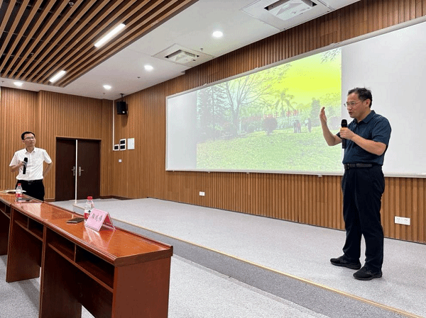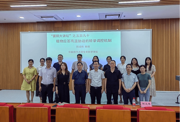 2023年6月29日下午,生科院、科研处在第五教学大楼A102举办“雷阳大讲坛”之五百九十期专题讲座,邀请华南师范大学生命科学学院院长阳成伟教授作题为《植物应答高温胁迫的转录调控机制》的学术报告。生科院院长刘锴栋、副院长王锂韫、副院长孙余丹、生科院骨干教师和部分本科生参加了学术报告会。